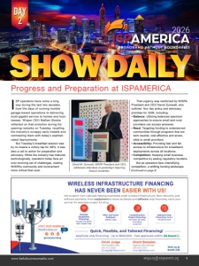 DAY 1 Visit us at booth 336 1 www.bekabusinessmedia.com Header... DAY 2 ISP operators have come a long way during the last two decades, from the days of running humble garage-based operations to delivering multi-gigabit service to homes and businesses. Wisper CEO Nathan Stooke reflected on that evolution during his opening remarks on Tuesday, recalling the industry’s scrappy early installs and contrasting them with today’s sophisticated deployments. But Tuesday’s breakfast session was by no means a victory lap for ISPs. It was also a call to action for preparation and advocacy. While the industry has matured technologically, operators today face an ever-evolving set of challenges, making WISPA’s community and involvement more critical than ever. That urgency was reinforced by WISPA President and CEO David Zumwalt, who outlined four key policy and advocacy priorities for 2026, including: • Balance: Utilizing balanced spectrum approaches to ensure small and rural providers can access airwaves. • Need: Targeting funding to underserved communities through programs that are tech-neutral, cost-effective and accessible to small providers. • Accessibility: Providing fast and fair access to infrastructure for broadband deployments across all locations. • Competition: Keeping small business competitive by easing regulatory burdens. But as operators face intensifying competition, a shifting funding landscape (Continued on page 3) Progress and Preparation at ISPAMERICA David M. Zumwalt, WISPA President and CEO, addresses attendees at yesterday’s Opening Session breakfast.